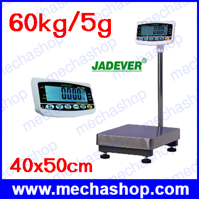 เครื่องชั่งดิจิตอลตั้งพื้น 60kg ค่าละเอียด 5g แท่นชั่งเป็นเหล็กพร้อมฝาครอบสแตนเลส ขนาด 40x50cm ยี่ห้อ JADEVER รุ่น JWI-710 (ไต้หวัน)