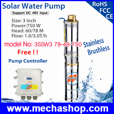 3inch 750W DC48V Brushless high-speed solar deep well pump with permanent magnet synchronous motor max flow 3.0T/h for home&farming