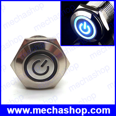 สวิทซ์กดติดปล่อยดับ มีไฟโลโก้สีน้ำเงิน 16mm 12V 3A blue power/angel Circle LED Metal Push Button Switch