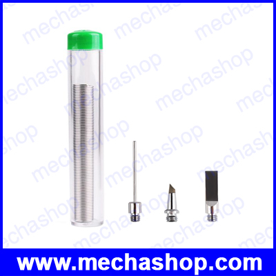 - Also come with soldering head, 2.4mm soldering tip, knife tip, cleaning sponge and stand, and soldering tin