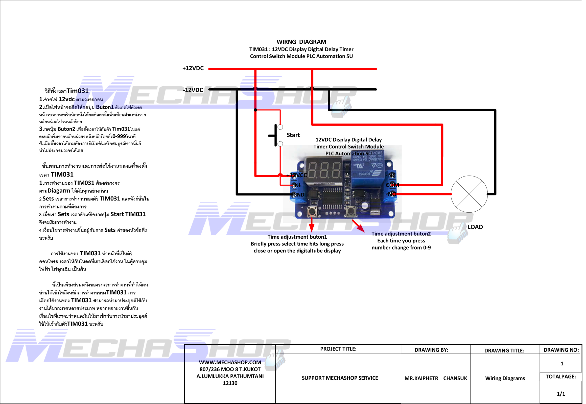 - การทำงานของ TIM031 ต้องต่อวงจรตามDiagram ให้ครบทุกอย่างก่อน