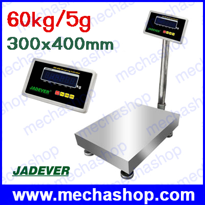 เครื่องชั่งพื้นสแตนเลสดิจิตอลตั้งพื้น 60kg ความละเอียด5g จานชั่งเป็นสแตนเลสขนาด 300x400mm ยี่ห้อ JADEVER รุ่น JWI-686 (ไต้หวัน)