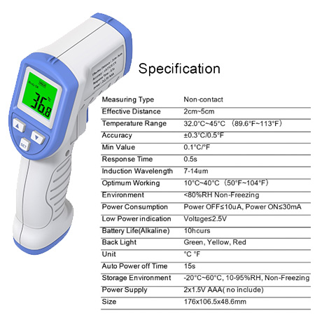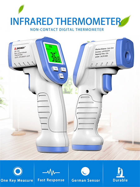 This infrared thermometer has non-contact, fast measure and safe use, overall design of the instrument is ergonomic to ensure operation Comfort of operation;use high sensitivity thermoelectric sensor to ensure measurement accuracy.