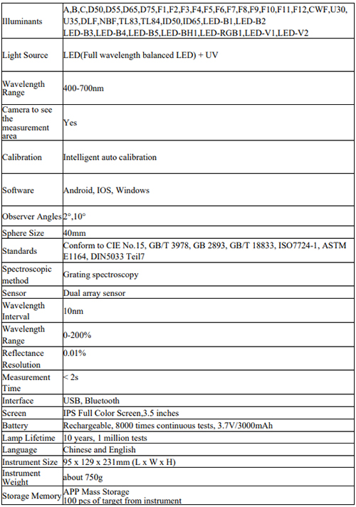 The instrument adopts a full wavelength balanced LED and UV as the illuminant, ensuring sufficient spectral distribution in the visible and ultraviolet bands, and materials with fluorescent can also be measured