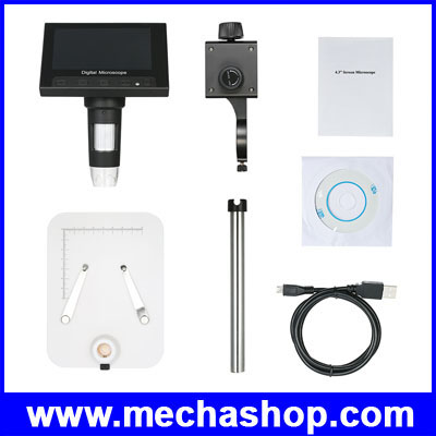 กล้องไมโครสโคปดิจิตอลพร้อมจอแสดงผล LCD ขนาดใหญ่ 4.3 นิ้ว กำลังขยาย 1000 เท่า และไฟ LED สีขาวปรับความสว่างสูงจำนวน 8 ดวง มันจะช่วยให้คุณเห็นและวิเคราะห์วัตถุเล็ก ๆ ในรายละเอียดด้วยกล้องไมโครสโคป และให้มุมมองความละเอียด 720P / VGA มาพร้อมกับที่ยึดเพื่อช่วยรองรับตัวกล้อง สามารถปรับกำลังขยายได้ตั้งแต่ 1X ถึง 1000X