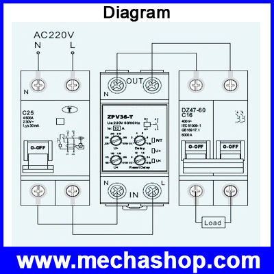 เครื่องป้องกันไฟตก ไฟเกิน อุปกรณ์ป้องกันไฟตก 32A 220V Over And Under Voltage Protection Relay ZHRV2-36T/A220